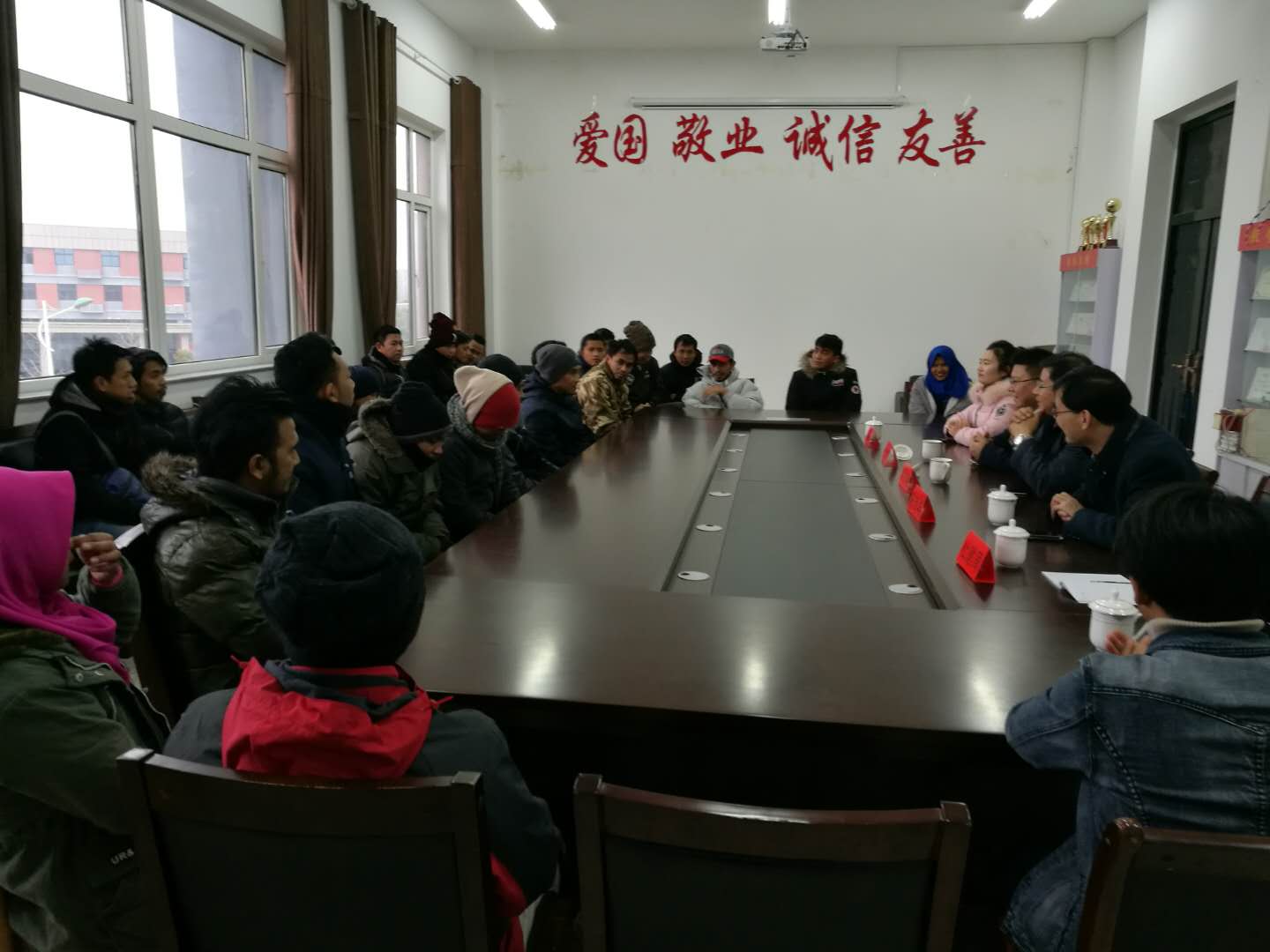 德龙公司领导与学员就汉语言学习情况、学习氛围、生活环境等方面做了详细了解,鼓励学员珍惜学习机会,努力学好汉语和理论知识为将来回国工作做好准备,并充分肯定了我校在人才培养方面做出的成绩。