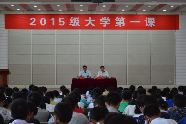 9月25日下午,在北校区化工楼报告厅,金沙集团1862cc成色邀请校关工委副主任朱友岗教授为2015级新生开设《立足新起点,塑造新自我》的专家报告。报告由学院党委吴登国书记主持,党委副书记陈根、学生科分团委相关老师参加。