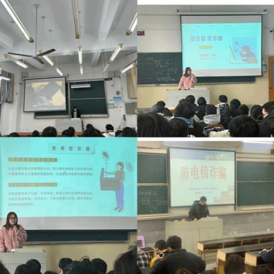 主题班会结合大学生群体的特点,重点介绍冒充熟人诈骗、网络刷单返利诈骗、“杀猪盘”、校园贷诈骗等几种常见典型的诈骗手段入手,用真实生动的案例、朴实的语言、简洁的道理为同学们上了精彩的“安全一课”。希望同学们能提高警惕心,牢固树立安全意识,加强安全知识学习,不断提高自我保护意识和安全防范技能,