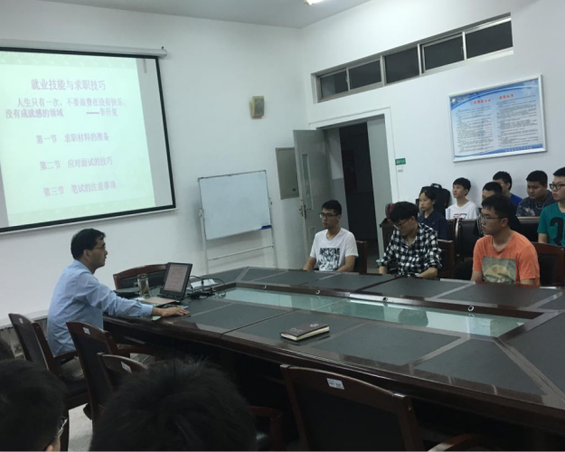 为指导我院毕业生积极参加盐城市新能源产业人才招聘会,掌握求职应聘技巧,9月4日下午,在北校区知达楼第一会议室,我院开展就业技能与求职技巧指导讲座。学院党委书记陈志华主讲,2016级新能源材料与器件相关专业毕业生参与。