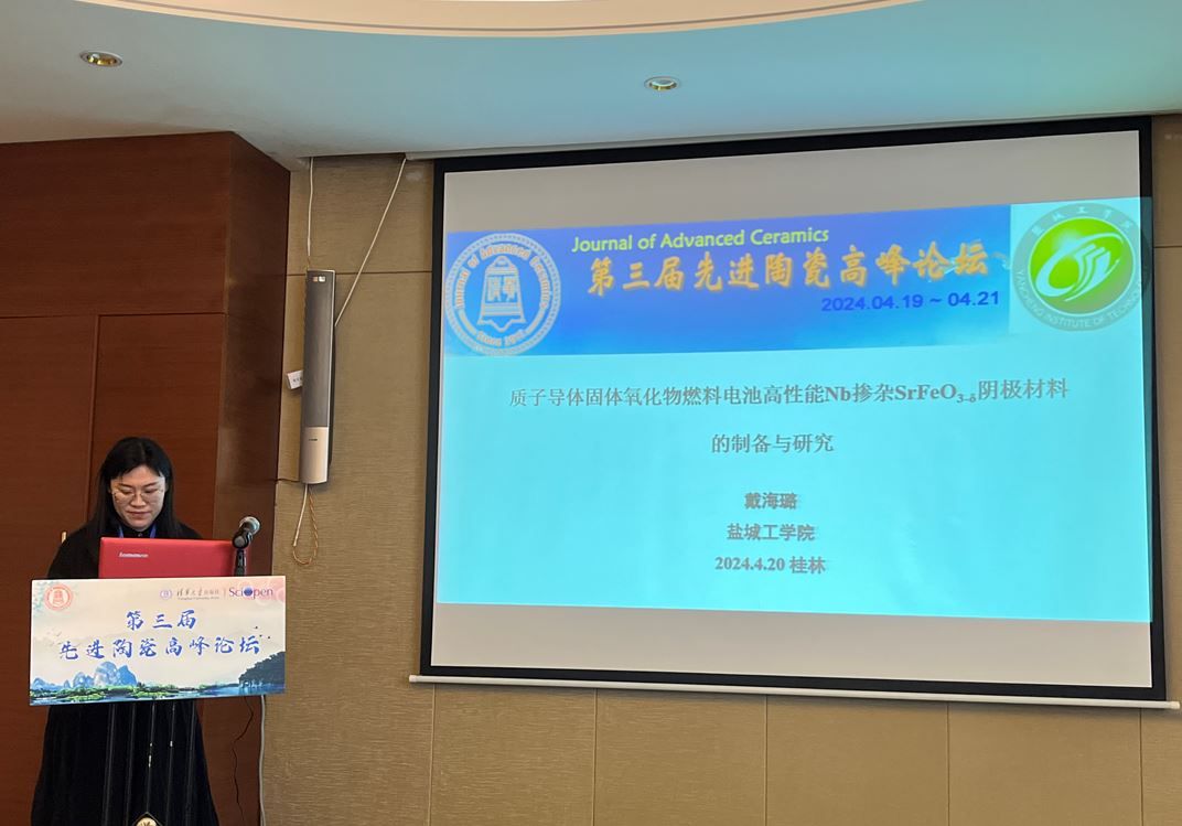 我校金沙集团1862cc成色教师杨子润、戴海璐、张柳参加了本次会议,其中,戴海璐副教授作了题为《质子导体固体氧化物燃料电池高性能Nb掺杂SrFe3-δ阴极材料的制备与研究》的学术报告。该报告详细介绍了新型高性能质子导体固体氧化物燃料电池阴极材料的制备过程及其优异的性能,为燃料电池技术的发展提供了新的思路。