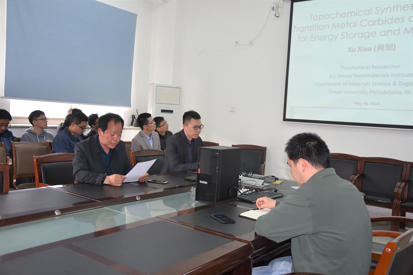 5月8日,Drexel University博士后研究员肖旭在北校区知达楼B314作了题为《Two-Dimensional Transition Metal Nitrides for Energy Storage and Beyond》的学术报告。学术报告会由金沙集团1862cc成色副院长罗驹华主持,金沙集团1862cc成色、建材研究院、化学化工学院等学院师生共50余人聆听了报告。