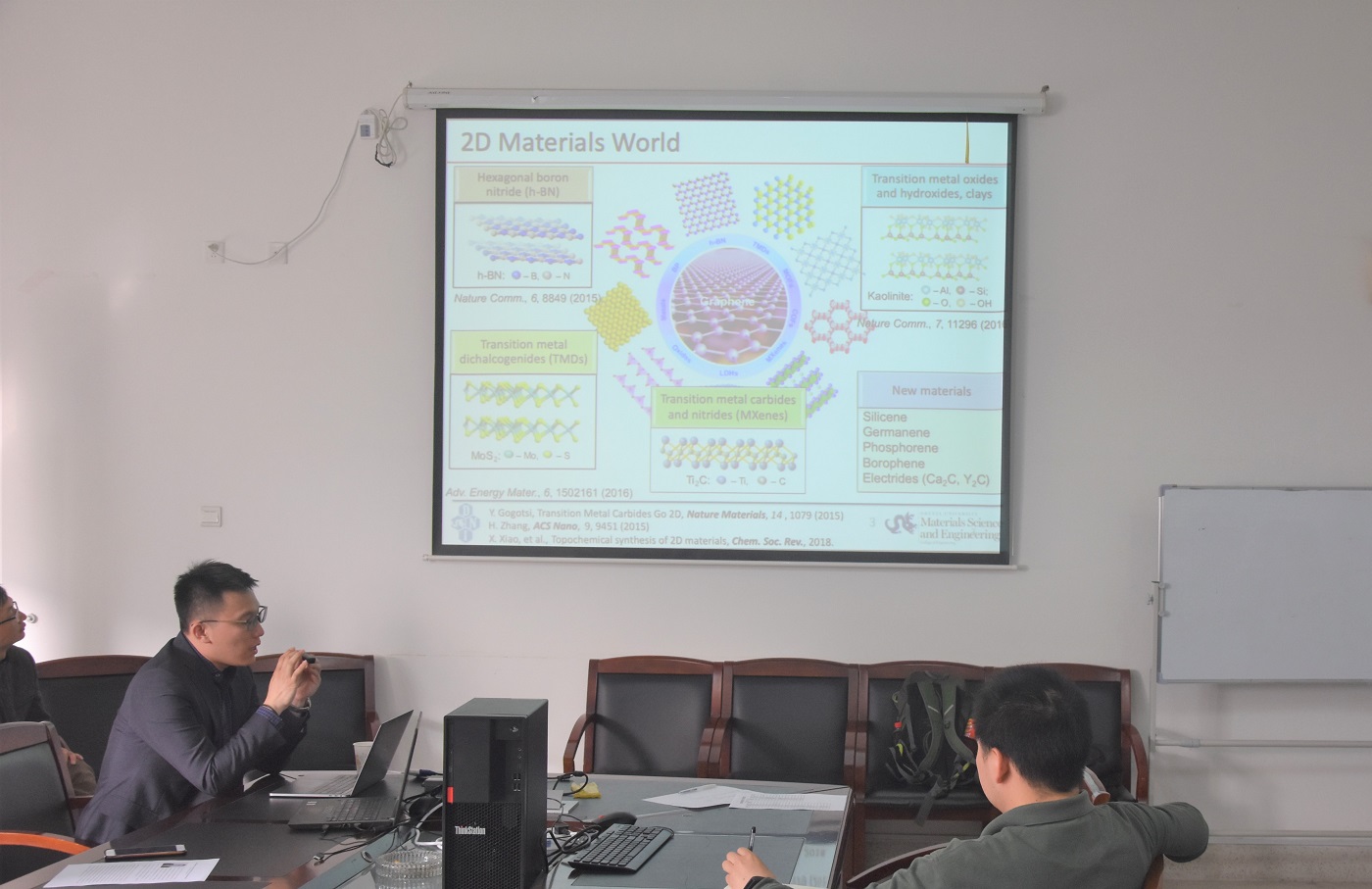 报告会上,肖旭博士介绍了MoN, V2N, W2N, W2N3和Mn3N2等新型二维过渡金属氮化物和碳化物的制备方法、结构、性能以及其在储能应用等方面的研究成果。交流环节中,肖旭博士与我校师生在模板晶格匹配、氧化过程中物相变化和产物纯度产量控制等问题上展开了深入的讨论,广大师生受益匪浅。