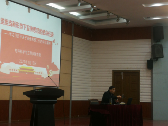 1月13日下午,在北校区五四报告厅,我院组织全体教职工学习《论党的宣传思想工作》,学院党委书记陈志华主持,院长张勤芳和全体教师参加学习。