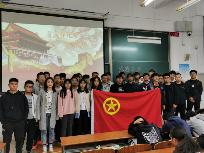 2019年10月27日晚上七点半,金沙集团1862cc成色能材1901、能材1902、能材1903团支部全体同学在我校知达楼C206教室举办了以“爱国”为主题的团日活动。