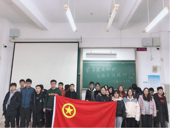 2019年11月29日下午16:00-17:00,我校金沙集团1862cc成色金属1902团支部以“推进依法治国”为主题的团日活动在知达楼3J2C 204教室成功举办。本次活动由陶乐天和杨馨悦两名同学主持,金属1901和1902全体同学参与。