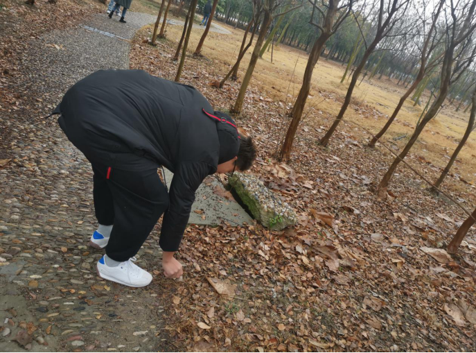 活动当天,经历夜雨,空气清新寒凉,树林的草坪间残留雨水和露水。雨露一方面洗刷天地宣扬焕然一新的气魄,另一方面也使泥土前所未有的饱满湿润:不仅吸附灰尘清洁了空气,也粘黏着志愿者的鞋衣。只是犹豫片刻,同学们便踏上草坪,开始清洁行动。第一次集体户外活动同学们热情洋溢,仔细清理坪间之余,有的同学向更远处散步,有的嗅寻着清新草木香,亦有的探访雨后新冒出的蘑菇。这次团日活动不仅清扫了校园,也给同学们一个亲近自然感受自然的机会:平日人流匆匆,独自一人有课务要忙,少有闲情;即使有,独身投入也显怯赧。简单清扫后,大家便用伸手拾取枯枝落叶。这些是树林的再自然不过的一部分,本不必清理,为校园行道的整洁让步,姑且退回草丛处。这应算不得屈就:它们本是愿意归根迎新去,正如志愿者们清扫旧的迎来新的,这是大家共同的心愿。明年若有格外生机的枝桠新叶焕然校园,有同学们的辛勤劳动,也必定有它们的一份心力。