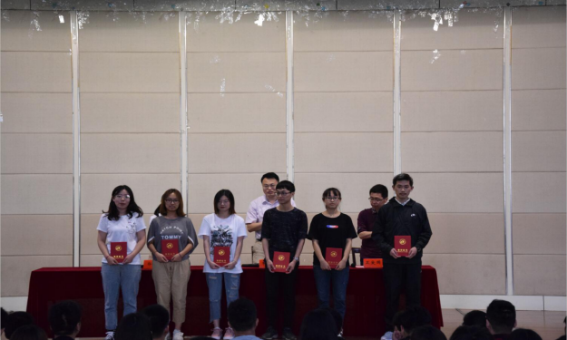 6月13日下午,在北校区化工楼报告厅,我院召开“十佳学习标兵”、“先进班集体”、“学科竞赛先进个人”表彰大会。学院党委副书记朱凌,专职辅导员卫爱国出席大会,院学生会、团委、班长、团支书等主要学生干部100余人参加,学工办副主任郭群娜主持大会。