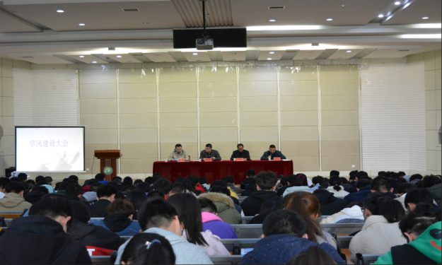 院长张勤芳结合学院目前取得的成绩,进一步强调了学风建设的重要性。他指出,推进学风建设,是提升人才培养质量内涵建设的迫切需要,是学生拓展自身素质更好走向社会的内在要求。他在肯定学院近几年取得成绩的同时,也指出学生学习态度不端正、沉迷游戏刷剧、大学英语和计算机过级率较低等问题。针对学院的学风建设,他要求全体学生从思想上,认识到学风建设与自己息息相关;从行动上,积极投身到学风建设活动中来,杜绝不良学风行为;从前途上,为自己积累走向社会的资本。