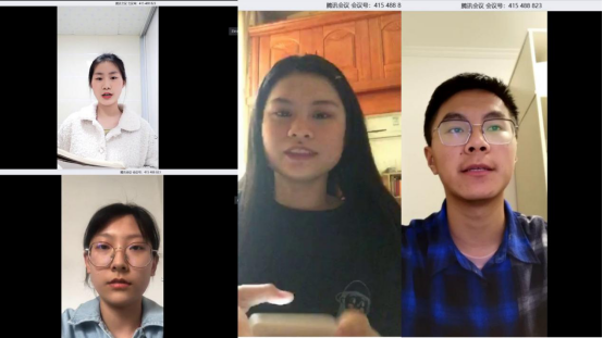 比赛前10分钟,选手们陆续进入直播间。随着时针跳动至整点“13”,线上云朗诵决赛正式拉开帷幕。大三学长致辞,向抗疫一线人员致以最高敬意;观看防疫视频,点燃参赛人员激情,直播间热情高涨。