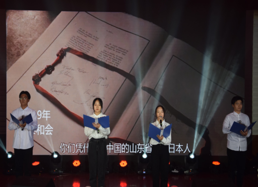 台下的灯光照亮整个会场,更照亮了同学们的未来,场中的歌声悠扬,歌唱我们繁荣昌盛的祖国。最后所有演职人员登台大合唱《我和我的祖国》,晚会在《难忘今宵》的歌声中圆满结束。