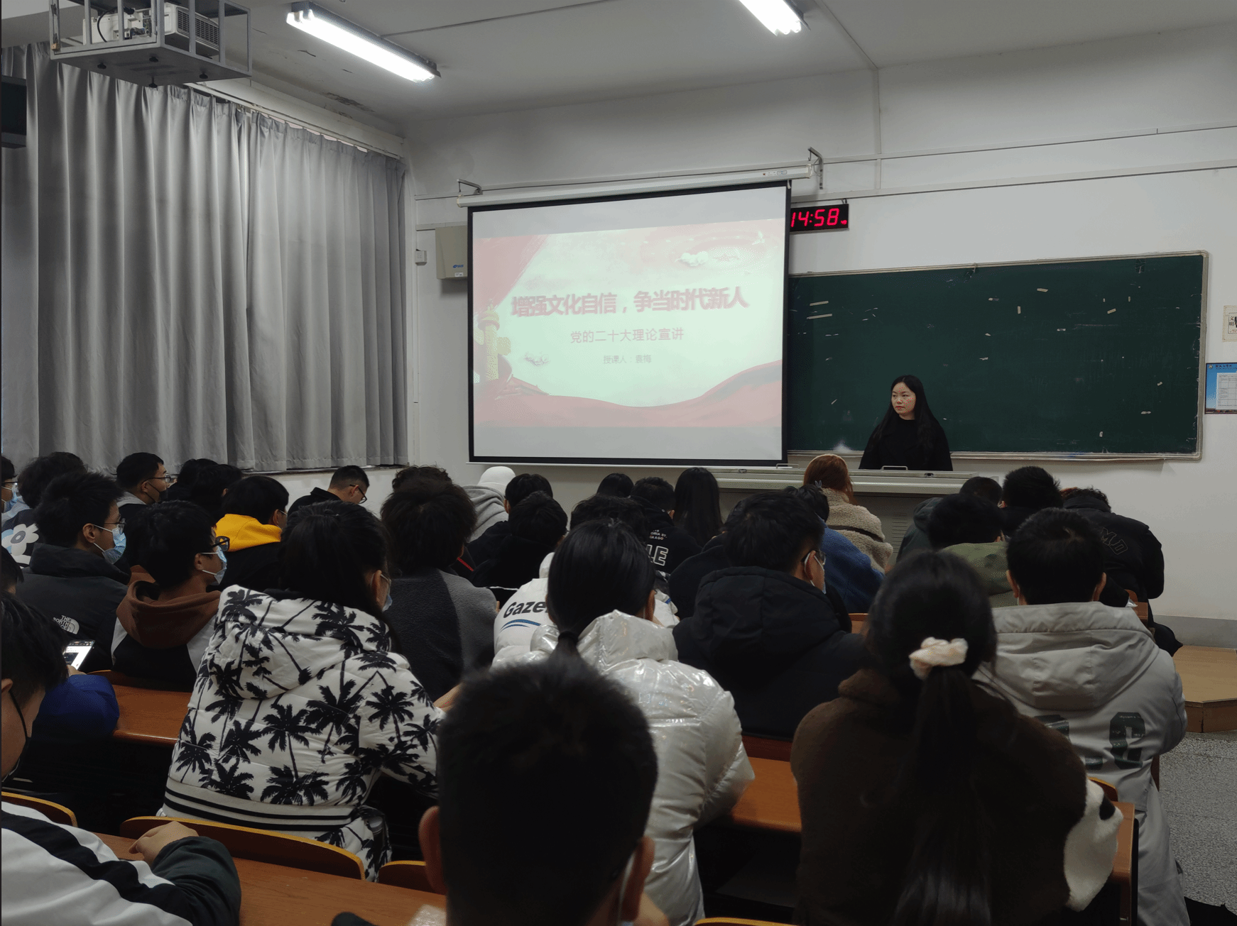 为扎实推进学习宣传贯彻党的二十大精神,12月9日,金沙集团1862cc成色专职辅导员袁梅以“增强文化自信,争当时代新人”为题,紧密结合二十大报告,面向21级学生开展主题讲座。
