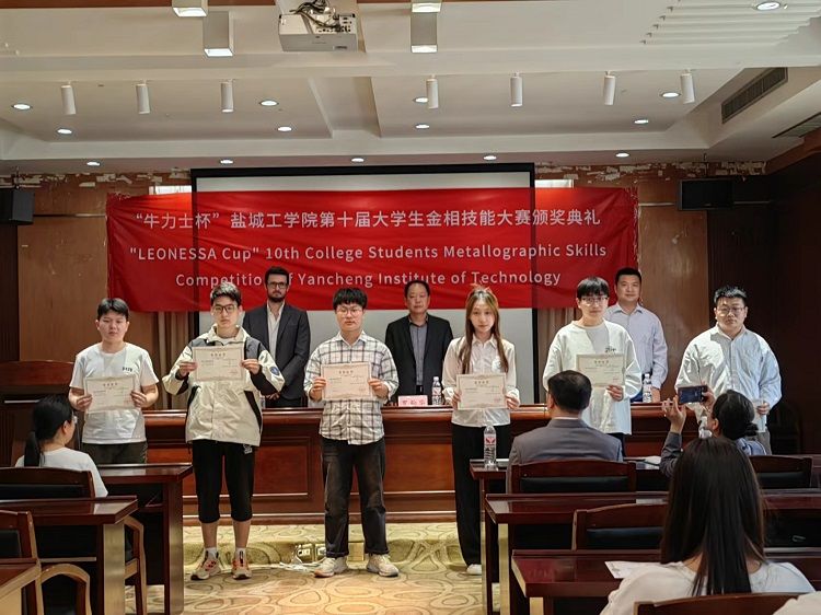 牛力士公司总经理Stefano先生发表致辞,表达对人才的欢迎,邀请同学们到公司就职。与会领导为金相技能大赛获奖学生颁发荣誉证书,勉励同学们再接再厉。B金属211班殷美玲同学作为获奖学生代表发言。