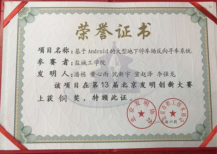 6月26日下午,第十三届北京发明创新大赛颁奖会在北京金泰海博大酒店八层阳光厅举行,我校一作品获得该赛事的铜奖。