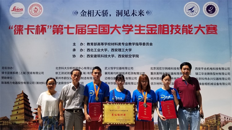 8月26日至30日,由国家教育部高等学校材料类专业教学指导委员会主办,西北工业大学、西安理工大学承办,西安建筑科技大学、西安航空学院协办的“徕卡杯”第七届全国大学生金相技能大赛在西安举行。经三天激烈角逐,我院金属152班王明腾同学获一等奖、张陈庭颖同学获二等奖。孙瑜、庞绍平、宋娟等三位老师获得优秀指导教师奖,我校获得最佳组织奖。比赛期间,孙瑜教授应邀参加了在西北工业大学大学诚字楼报告厅举行的高等学校材料学科虚拟仿真实验教学研讨会。