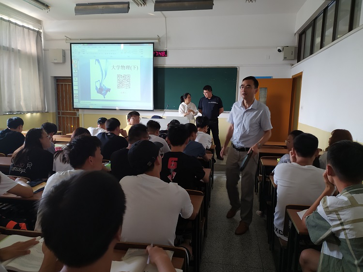了解教师到岗、课程安排以及教师、学生的上课状态等情况。学院教学秩序井然,教师授课认真,学生专注听讲,师生精神状态饱满。