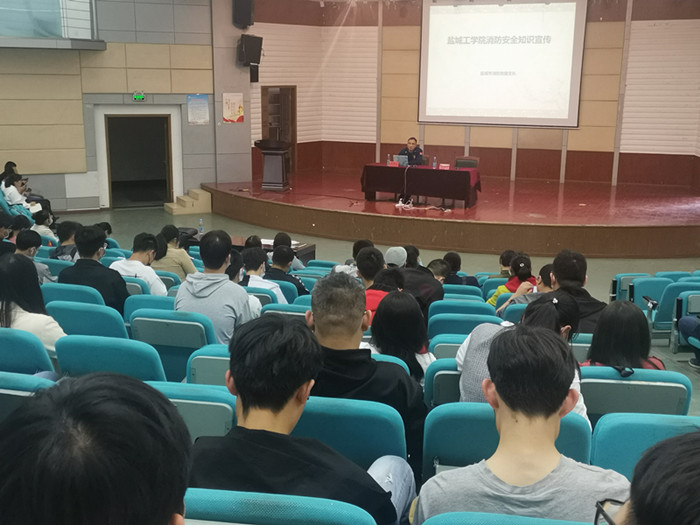 5月17日下午,在北校区五四报告厅,盐城市消防救援支队法制科科长羊加山为我院师生作消防安全知识讲座。学院副院长罗驹华主持,保卫处副处长李义峰、消防科负责同志和我院师生代表等100余人参加。