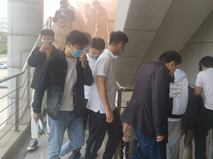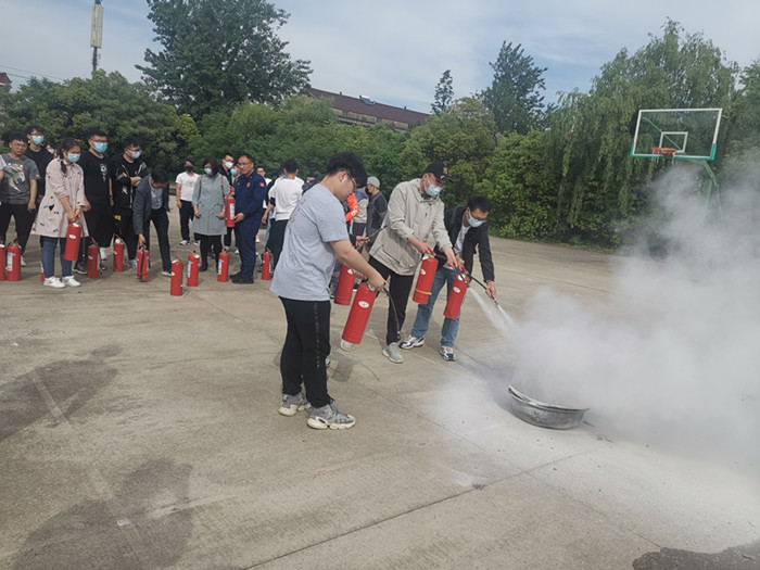 讲座后,师生代表在羊科长的指导下进行发生火灾事故时的逃生演练和消防灭火演练,学习了灭火器的使用操作。