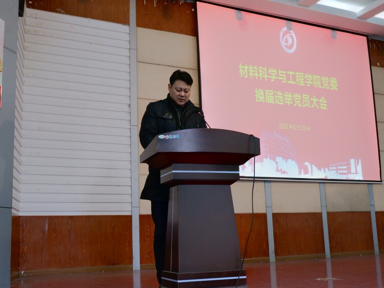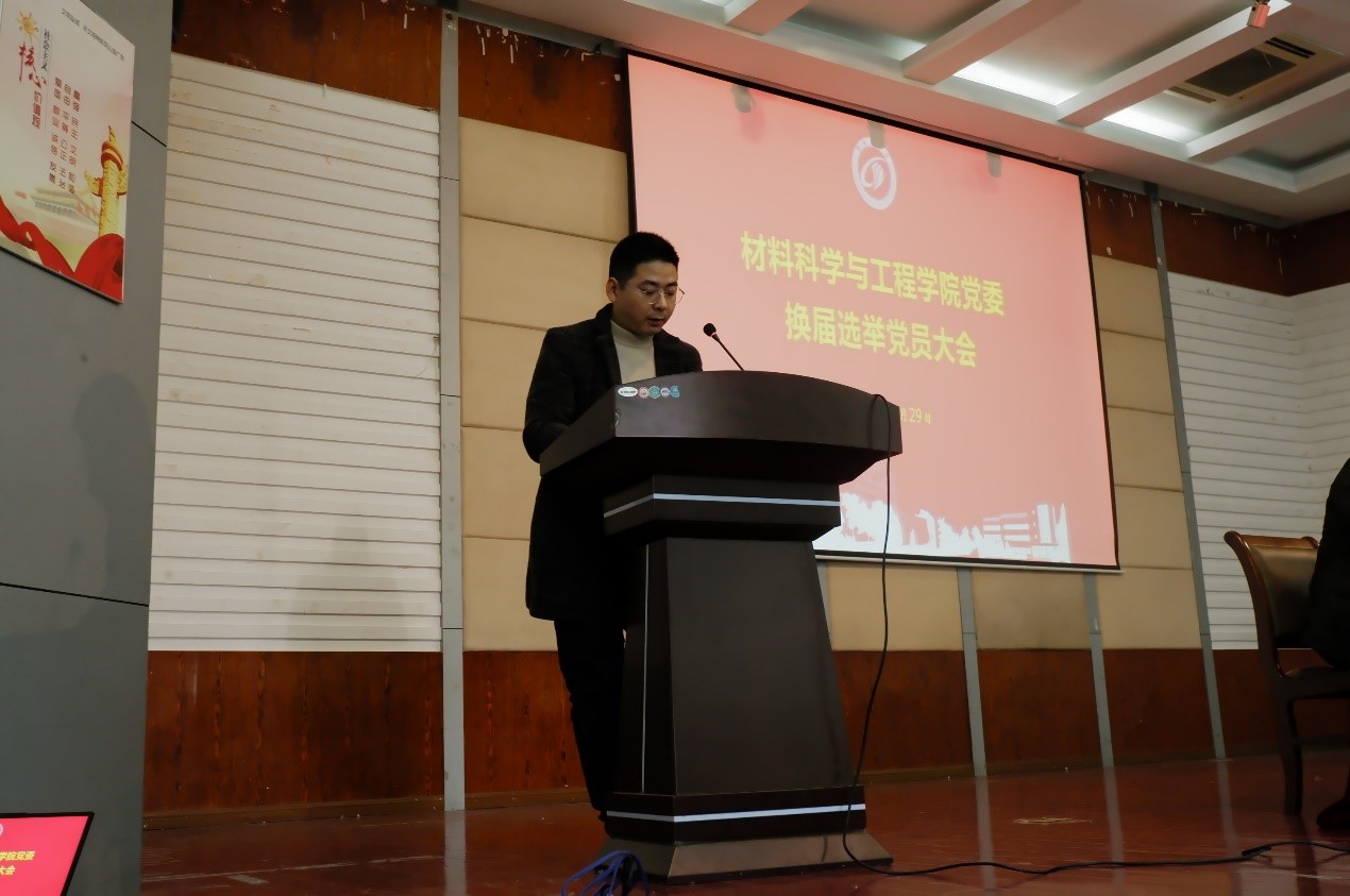 唐浩代表学院党委向大会作工作报告。他指出,三年来,学院党委在校党委的正确领导下,团结带领广大党员和全体师生员工,以抓学院事业发展规划为引领,以目标任务落实为抓手,以目标责任考核为举措,为促进学院各项事业快速发展提供了坚强有力的组织和政治保证。他表示,新一届党委将不断加强党的建设,始终坚持服务学院事业发展的大局,瞄准目标,聚力发展,党政协力,攻坚克难,进一步推进学院的事业发展和建设。