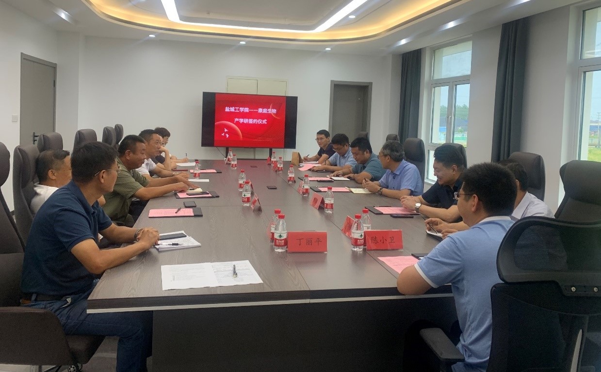 林荣业代表公司对金沙集团1862cc成色的来访表示热烈欢迎。他表示,随着公司在盐阜大地上扎根与发展,属地高校,特别是我校金沙集团1862cc成色已与康庭生物公司形成了良好的校企产学研合作基础。此次产学研交流与签约仪式,将是康庭生物公司与金沙集团1862cc成色深化合作与交流的基础与开端。 对企业目前的生产经营业绩情况进行了简要介绍,并对于双方前期合作取得的成果给予肯定,期待双方能够继续在产品研发、项目申报、人才培养等方面深化合作,实现优势互补、相互促进、共同发展。会上,李军帅介绍了康庭生物公司的历史、发展过程与远景规划。