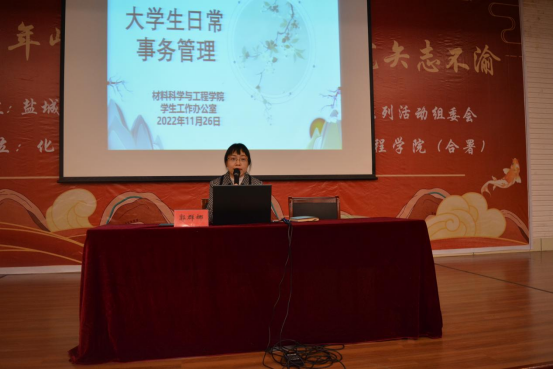 11月27日下午,金沙集团1862cc成色党委副书记朱凌和学工办主任郭群娜分别为新生开展入党启蒙教育和大学生日常事务管理教育讲座,新生辅导员、全体2022级新生400余人参加。