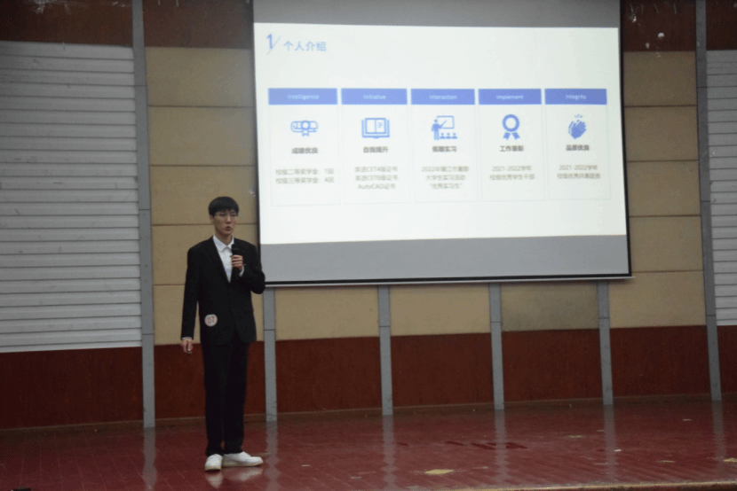 决赛分为“自我介绍”“评委问答”“才艺展示”三个环节。在自我介绍环节,选手从个人基本信息、学习情况、实习实践经历等方面进行自我展示;在评委问答环节,评委就岗位认知、竞聘优势、岗位匹配度等方面进行面试提问,选手一一进行回答,较好展示了自身临场应变能力、思辨能力、团队合作能力;才艺展示环节,唱歌、朗诵等才艺充分展示了选手们的个性特点,现场掌声、欢呼声不断。经过两个小时的精彩比拼,最终张永康、黄联朔同学获得本次比赛的一等奖。