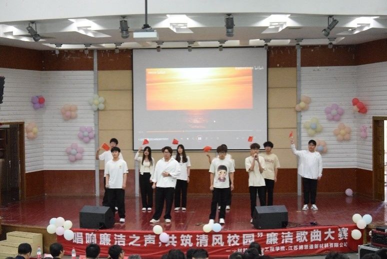 为了进一步贯彻落实党纪学习教育要求,弘扬廉洁文化,加强师生的廉洁自律意识。6月12日下午,金沙集团1862cc成色在知达楼五四报告厅成功举办了廉洁歌曲大赛,金沙集团1862cc成色党委书记唐浩、院长罗驹华及江苏博思通新材料有限公司企业代表出席观摩并进行颁奖。