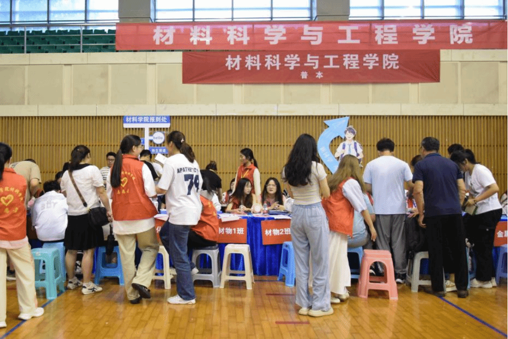 为了确保新生顺利报到,学院提前部署了一系列迎新工作。在校门口设立接待点,学姐学长们化身志愿者,手举学院的名牌,积极帮助搬运行李,引导每一位新生顺利办理报到手续、宿舍登记、银行卡激活、电子信息采集等。迎新横幅、学院发展概况展板、拍照打卡KT牌,迎新现场每一处精心得设计都尽量让“材子们”感受到家的温暖。一张张热情的笑脸,一句句耐心的引导,一项项贴心的服务,让新生们有条理地开启入学生活。
