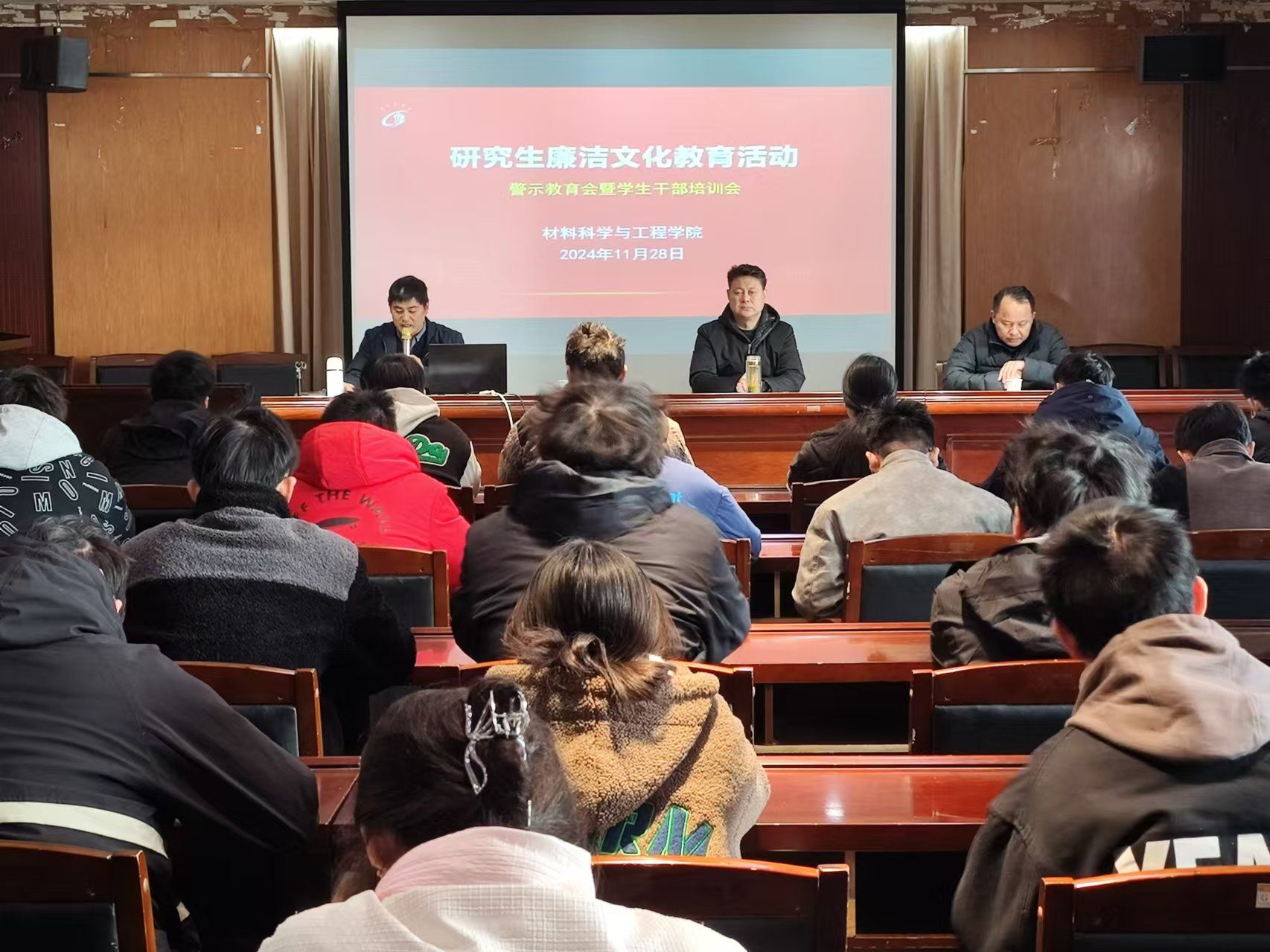 为进一步贯彻落实学校廉政警示教育会议精神,增强大学生廉洁意识,深入推进党风廉政建设和反腐败斗争,营造“人人思廉、人人保廉、人人促廉”的文化氛围,金沙集团1862cc成色于11月28日上午在重点实验室报告厅举办研究生廉洁文化警示教育会。党委书记唐浩、党委副书记、纪检委员温崇明出席,研究生辅导员王冰冰及40余名研究生参加。副院长刘超主持会议。