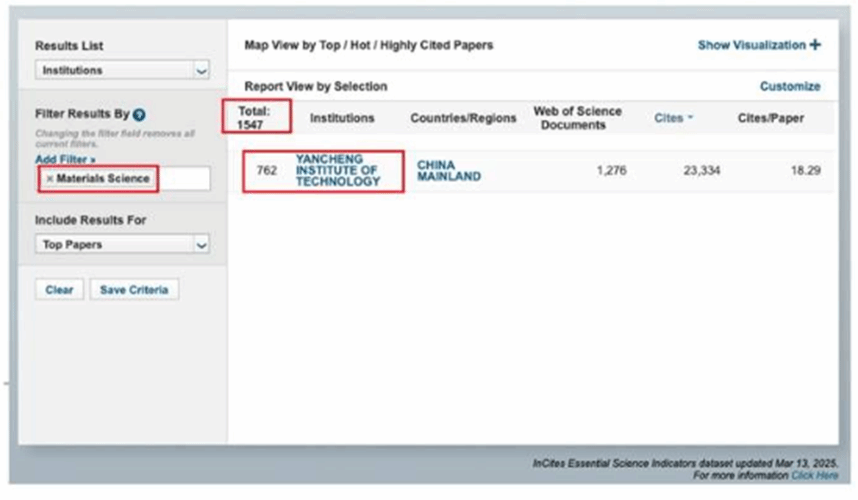 3月14日,根据美国ESI(Essential Science Indicators,基本科学指标数)数据库发布的最新数据显示,我校材料科学学科首次进入ESI全球排名前5‰。全球排名第762位,比上一期前进4个位次,这标志着我校材料科学学科的学术水平和学术影响力持续上升。
