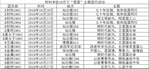 为进一步厚植爱国主义情怀引导青年承担责任使命。我院团委组织引导各团支部积极开展“爱国”主题团日活动,抒发爱国情感,提高支部凝聚力,丰富课余生活。