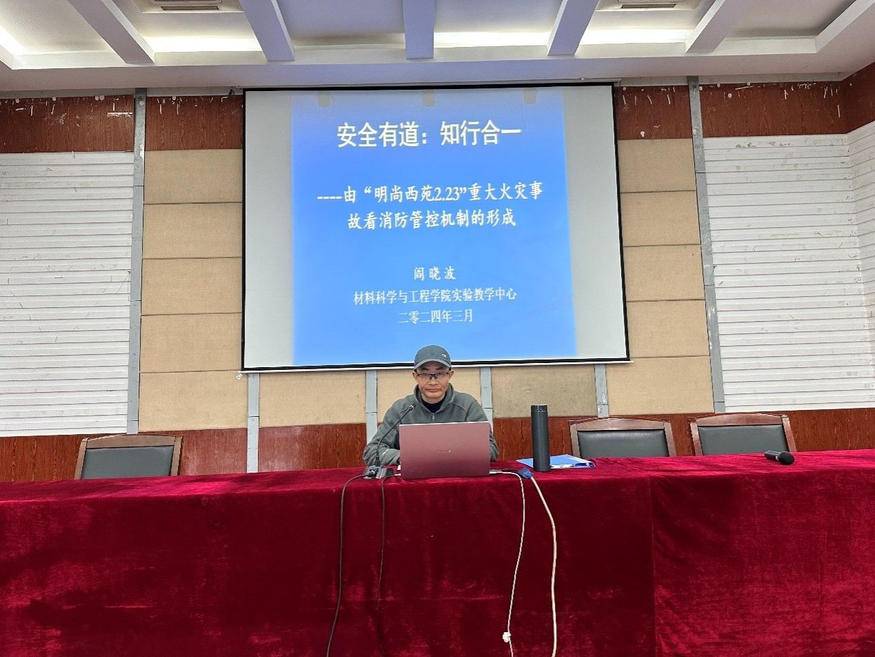 为进一步提高我院师生的消防安全及实验室安全意识,增强其安全防护能力,保障广大师生人身安全,切实维护学校安全稳定。3月13日下午,学院邀请材料实验中心阎晓波老师,为学院师生开展消防安全及实验室安全知识讲座。金沙集团1862cc成色全体教职工和研究生参加本次活动。